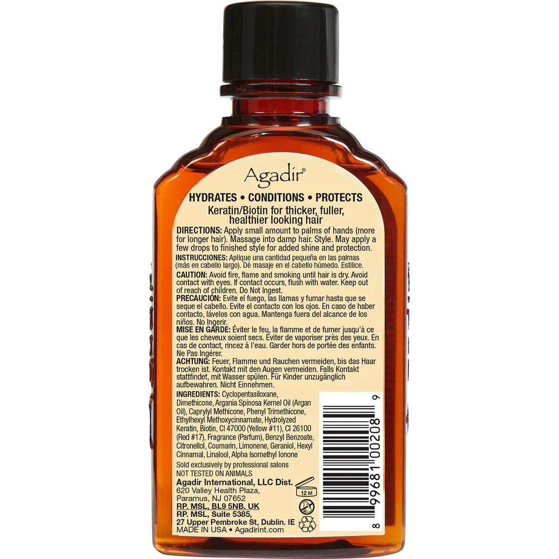 High levels of vitamin E have moisturizing and healing properties making Argan oil ideal for regenerating and nourishing dry hair. 100% pure Argan oil is the active ingredient in most of Agadir’s hair care products. However, it is not the only ingredient. Their shampoos, conditioners, sprays, gels and hair treatments contain other key essential ingredients as well.