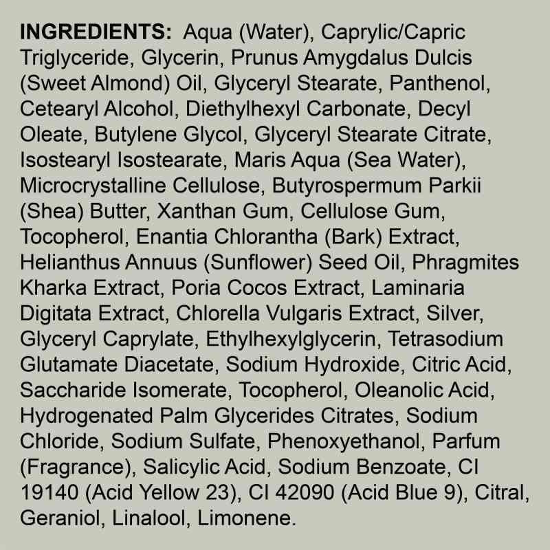 Freshwater algae chlorella hydrates the skin, while healing clay mattifies the skin by reducing the sebum glands. Silver and salicylic acid have an antibacterial and anti-inflammatory effect. Silver and Australian reeds further reduce bacterial presence.