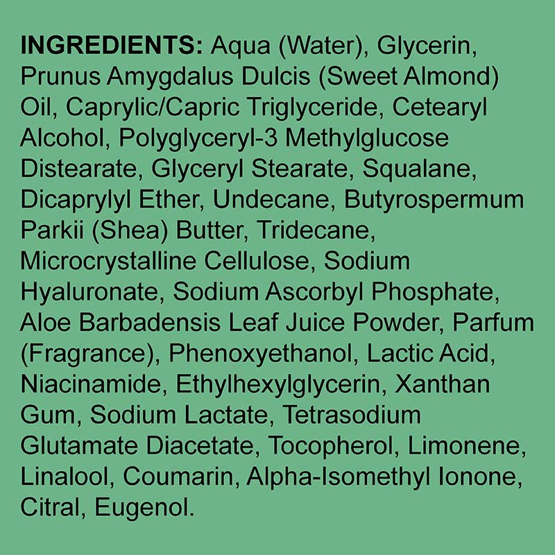 Key Ingredients: aloe vera juice, Vitamin B3, niacinamide, low and high molecular weight hyaluronic acid, squalane.