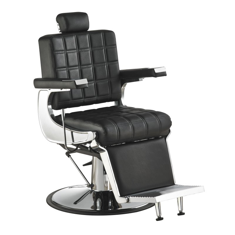 Elevate your barbershop to the next level and show your clients you mean business. Block material design adds sophistication and comfort. Classic black and chrome design. Comfortable footrest with supports for added luxury for your clients. Sturdy armrests provide support for all shapes and sizes. Secure pegs at bottom of footrest give extra support.