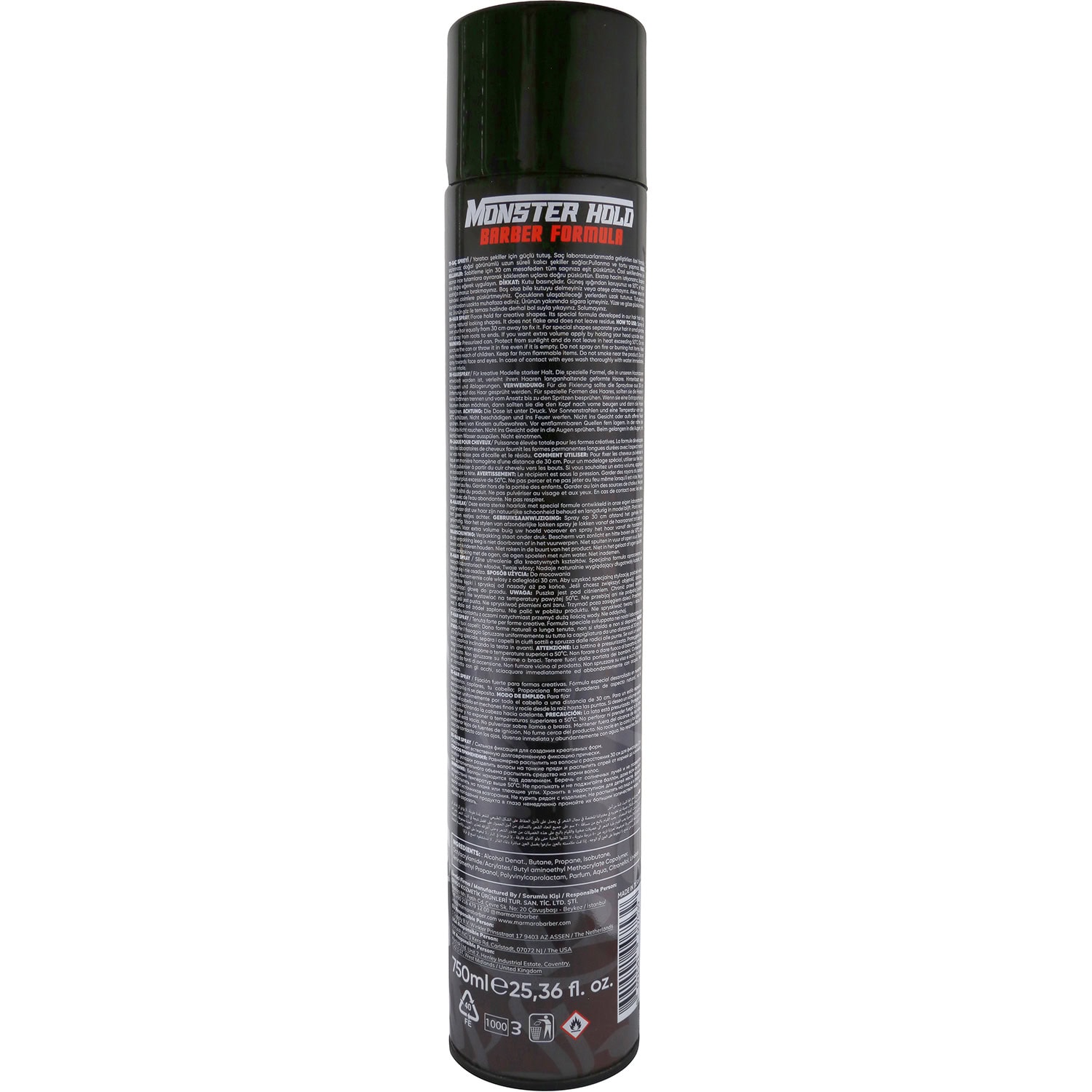 True classic barber hair spray formula in monster aerosol can form. Imparts monster levels of hold to styles, so a little goes a long way. Offers humidity resistance so styles are sealed in place throughout the day. Features bergamot and crabapple top notes.