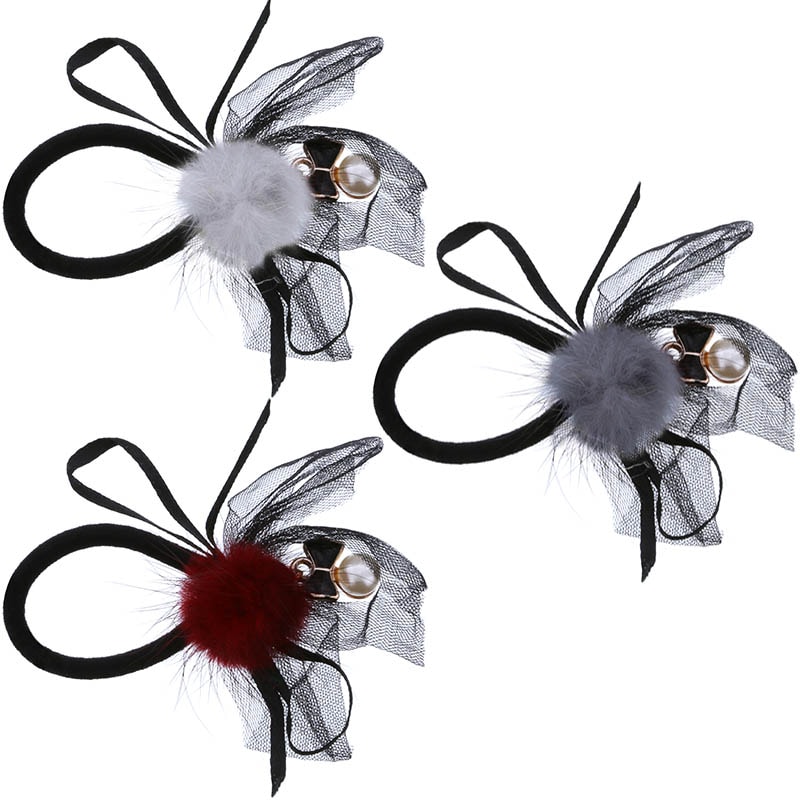 Fashionable hair elastics with a combination of pompom, pearl and lace material for an elegant styling aid. Adds style and sophistication to any style. Includes 6 per pack of assorted colours*.