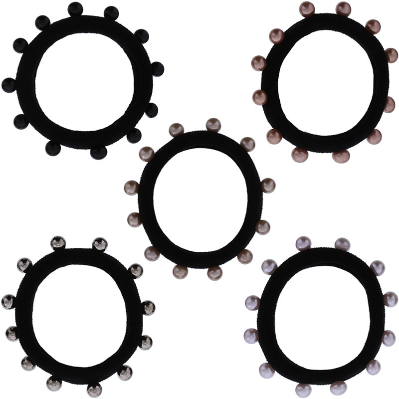 Comfortable hair elastics with pearls spaced around circumference. Adds style and sophistication to any style. Includes 6 per pack of assorted colours*.