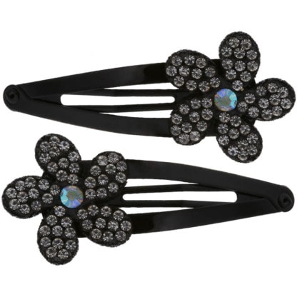 Flower design spring clips adorned with strass. Adds flair and elegance to any hairstyle.