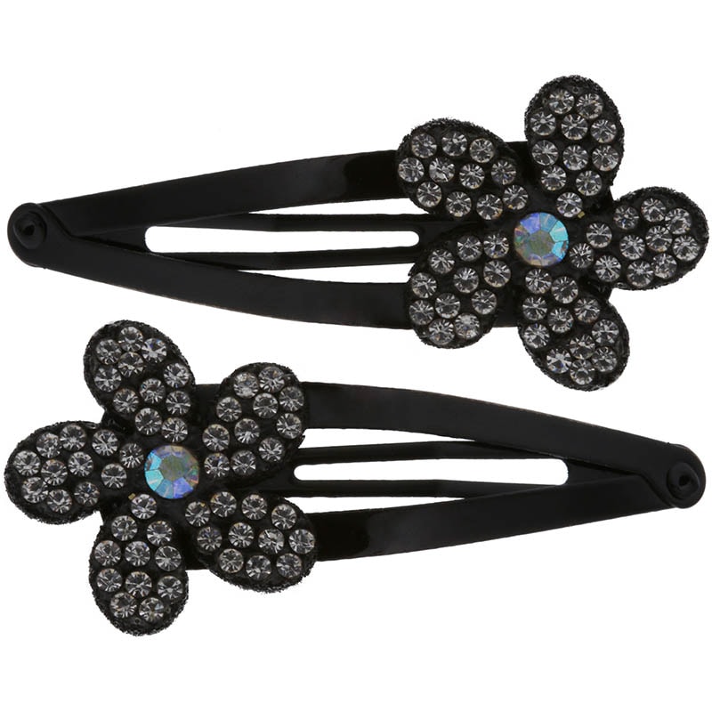 Hair Clips Spring with Strass, Black, 2/Pack