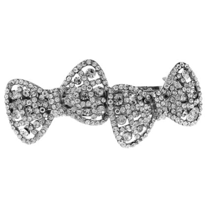 Subtle yet sophisticated hairstyle piece that adds elegance and uniqueness to any look. Features dual bows adorned with diamantes that catch the light at different angles.