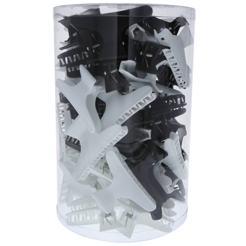 High quality, professional butterfly clips that will stay in place all day. Features a combination of black and white clips. Adds style and flair to any hairstyle.
