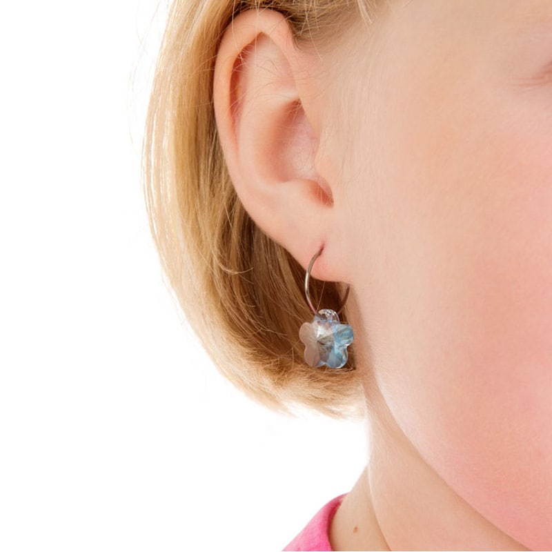 Blomdahl Titanium Earrings – Swarovski Crystals Flower, Aquamarine