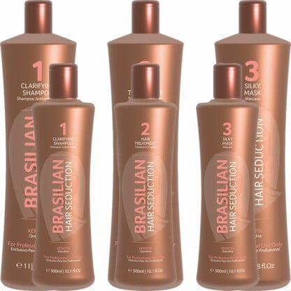 The professional Brazilian keratin kit with all 3 steps from Brasilian Hair Seduction.