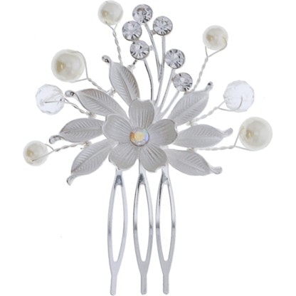 Pearl and diamante bridal side comb for adding elegance to any hair style. Ideal for special occasions, this bridal comb provides sophistication to all looks with its intricate flower petal design. Features small, delicate flower centrepiece with pearls and diamante wire extensions. Longer comb is ideal for thick, dense hair to keep it in place.