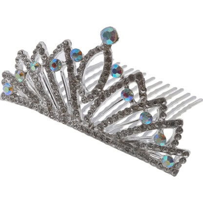 Bridal Hair Comb Crown with Zircon & Iridescent Strass