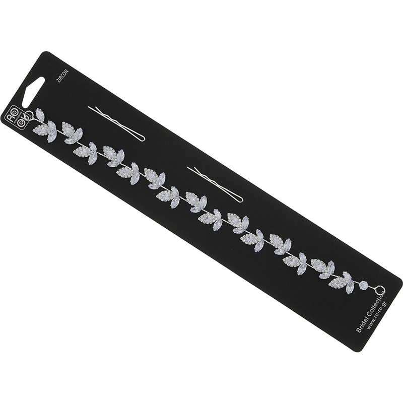 A special bridal accessory in the shape of a large leafy limb to transform a look into one more luxurious and sophisticated. Within each leaf there are different zircon stone shapes for even more drama. At 30cm, this headpiece is shaped around the head and attached into place with included pins. Light reflects off stones for eye-catching results.