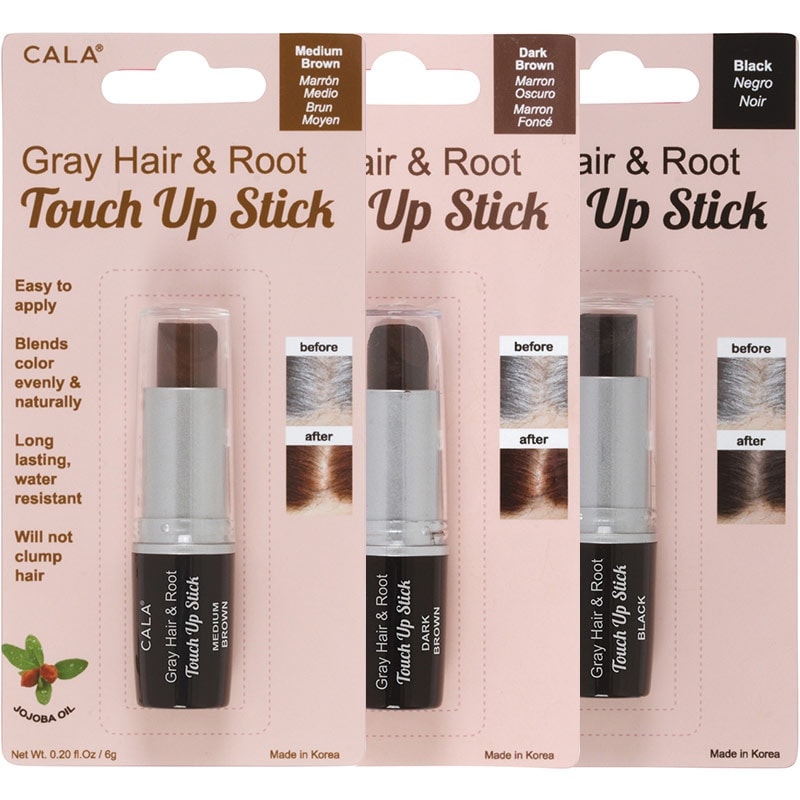 Gray hair touch up stick for quick and easy cover. Convenient stick that can be taken anywhere for re-application and with colour that is easy to apply and blend for a natural finish. Enriched with jojoba oil for smooth application. Long-lasting, water-resistant formula that does not clump hair.