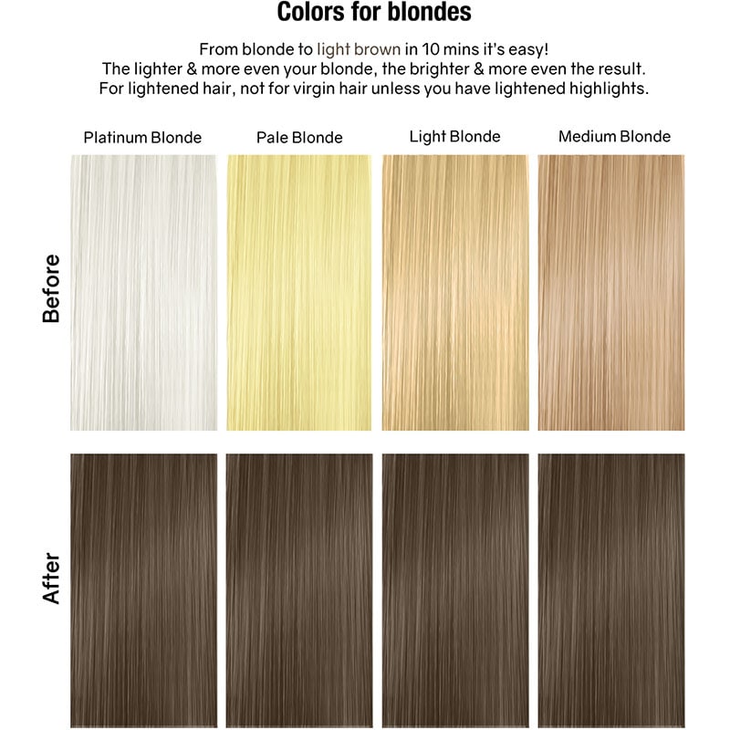 Maintain natural brown tones and/or correct brassy warm tones or gradually enrich color of grey virgin hair. Do not use on blonde hair, highlights or balayage.