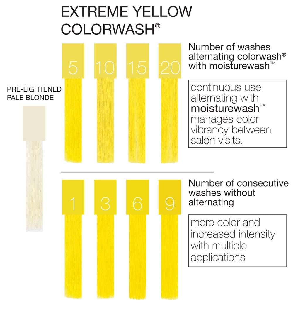 Viral® Colorwash® gradually lightens and fades from the hair when alternated with a clear, no color shampoo like Shinewash® or Moisturewash™. The intensity and durability of the colour is dependent on the condition and porosity of the hair. More lightened hair means more intense and long-lasting color. Color remains the same if you alternate with a no color shampoo and becomes more intense without alternating.