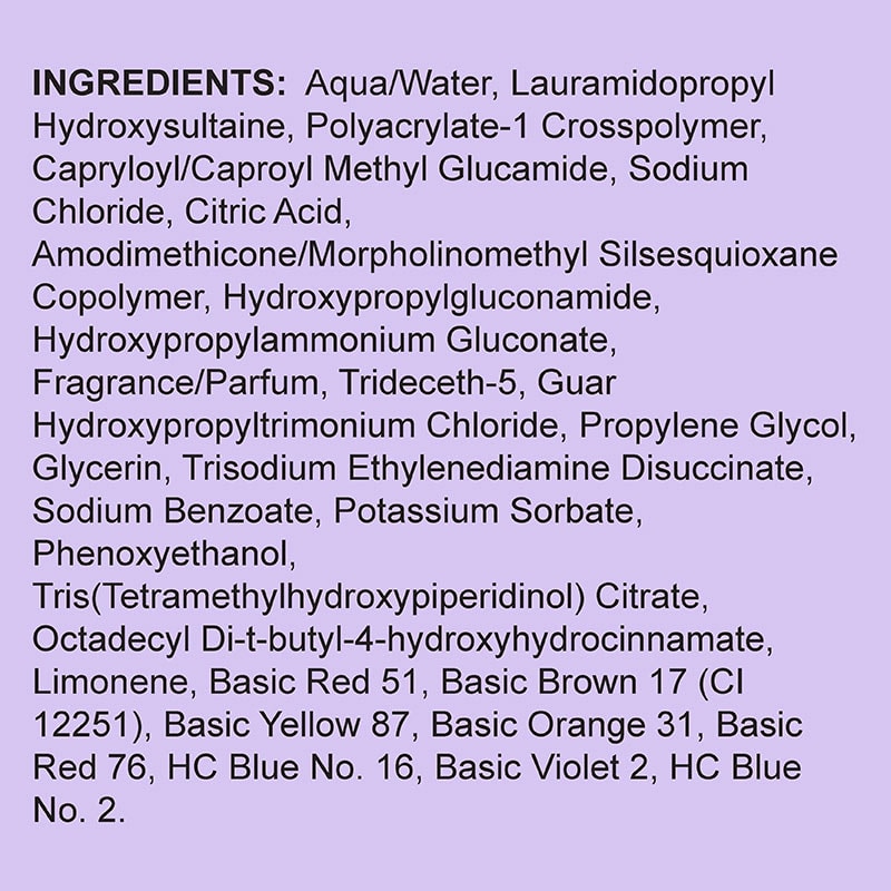 Timed-release color deposit conditioner that adds more color the longer it is left on. Provides intense conditioning, strengthening and rebuilding of bonds while depositing color. The amount of color will depend on the length of time left in the hair with more color deposited the longer it is left.