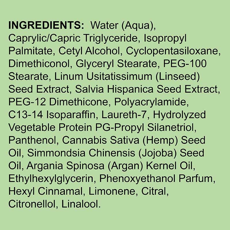 • Argan and Hemp Seed oils smooth and detangle unruly hair with frizz and humidity control