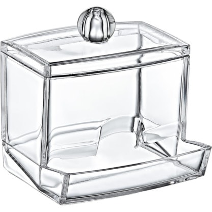 Classic organiser to house cotton buds. A trendy, clear design with 8.5x10x7cm dimensions to easily see contents. Keep your cotton in an organized container for easy access during make-up and spa sessions.