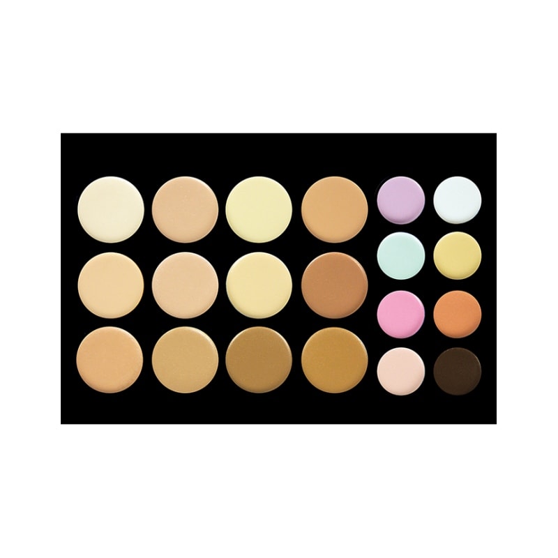 A cream-based 20 colour contour/concealer palette containing 12 concealer shades with medium, buildable coverage that can neutralize any skin tone. All shades are blendable to achieve the desired shade and can be used for highlighting and contouring. The palette also contains 8 colour correctors.