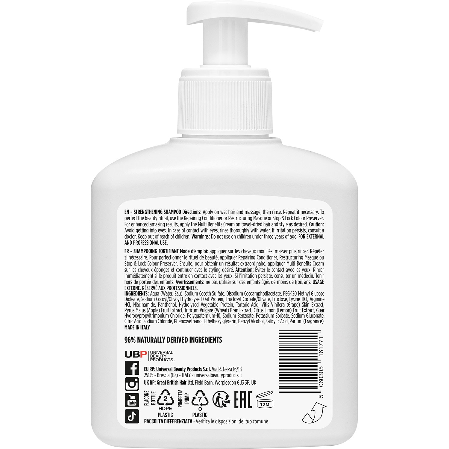 Apply on wet hair and massage, then rinse out. Repeat if hair is particularly damaged. To perfect the routine, use the Repairing Conditioner, Restructuring Masque or Stop & Lock Colour Preserver. For even better results, apply the Multi Benefits Cream on towel-dried hair and style as desired.