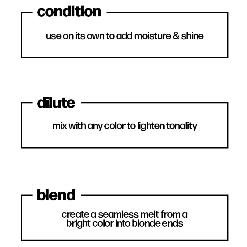 Clear turns down the volume of the other intensely bright Danger Jones colours. Use with any other colour to lighten its tonality and create a real pastel effect. Danger Jones colours are unbelievably intense, which makes them easy to fully saturate every hair strand. Adding clear to the mixture dilutes its intensity for a less intense result. Vary the amount of Clear to create limitless tones.