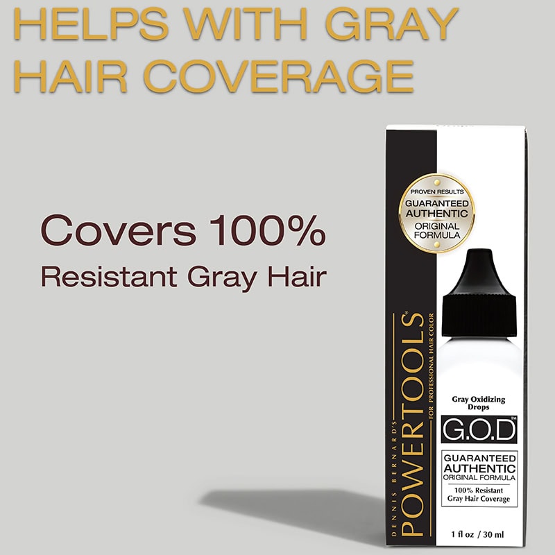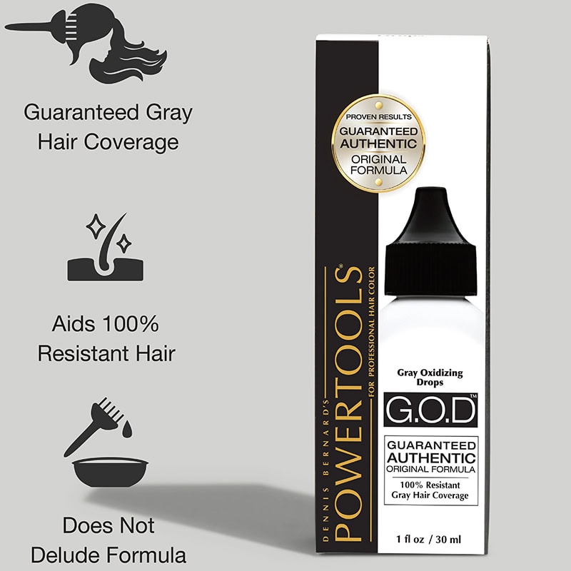 G.O.D covers 100% resistant grey hair completely. Can be used with any manufacturer’s permanent, demi and semi-permanent hair colour, without affecting mixing measurements or timing. Not suitable for use with colour stains or temporary colours. The ideal companion for effective grey hair coverage.
