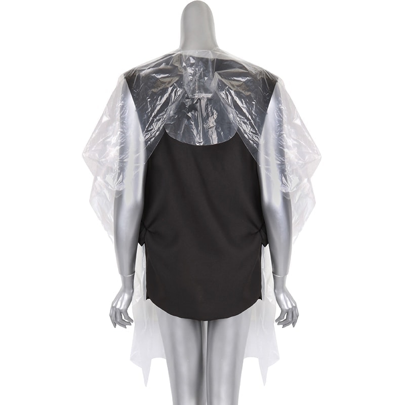 Incredibly lightweight and non-intrusive disposable plastic capes that ensure maximum hygiene and cleanliness for your business. A one-size-fits-all design cape that can drape over other attire without getting too hot or compromising comfort and maneuverability.