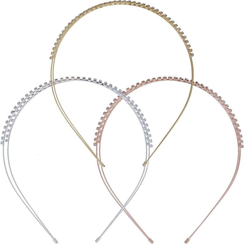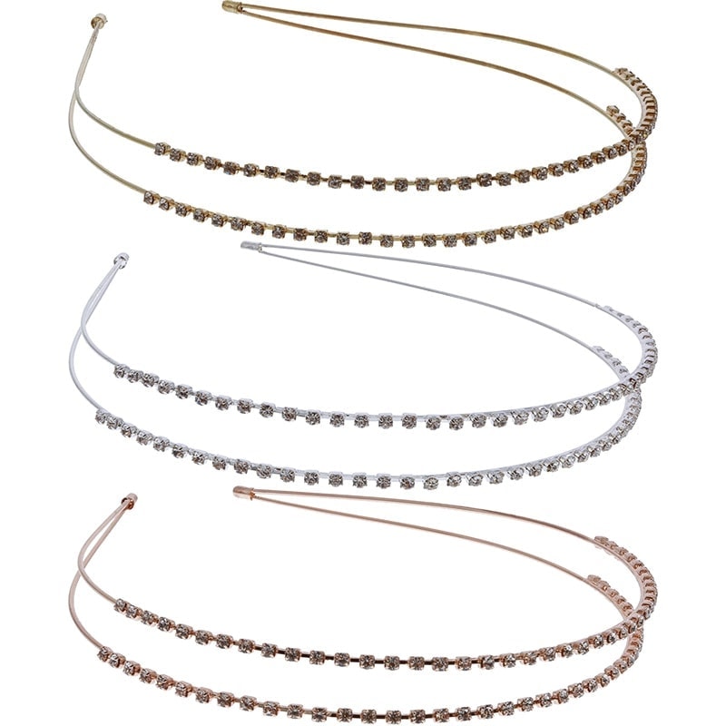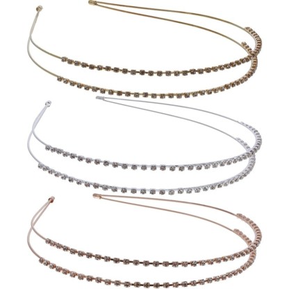 Classic Alice headband design adorned with sparkling strass in centre. Features a double row of strass for extra stability and more sparkling effect. Instantly adds more fun and dimension to any look. Ideal for special occasions.
