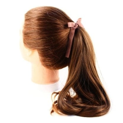 Attaches to the crown with a ribbon tie for a ponytail look.