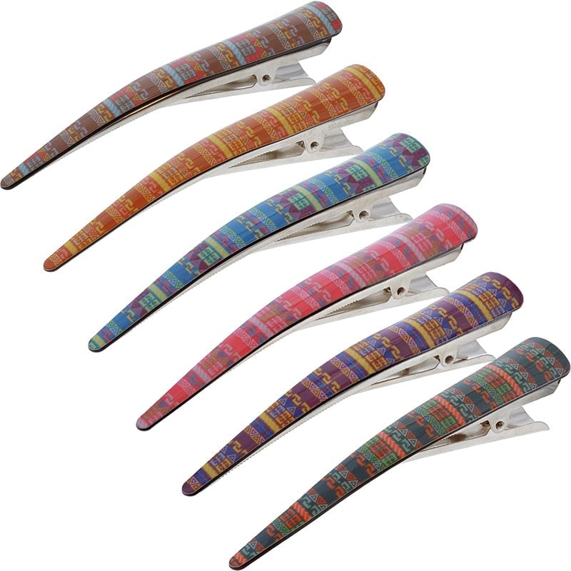 Assorted pattern ethnic sectioning clip. Adds style and fun to any look with bright colours and patterns. Available in six different styles.
