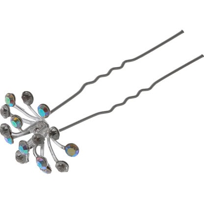 Sometimes a single beautiful pin is all you need to add the finishing touch to a look. This silver pin showcases a bouquet of iridescent strass for extra luxury and sophistication to any style. Simply pin it into your natural hair to see the magic unfold. Light reflects off strass for eye-catching results.