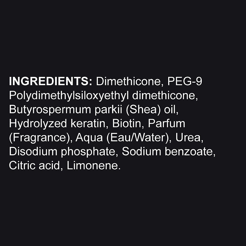 • Dimethicone: New generation of synthetic oils low in molecular weight to easily envelop the hair structure and create a soft and silky film. This allows for easy detangling, to remove any knots and correct wayward areas of growth. Hair is much easier to style and move around as you need.