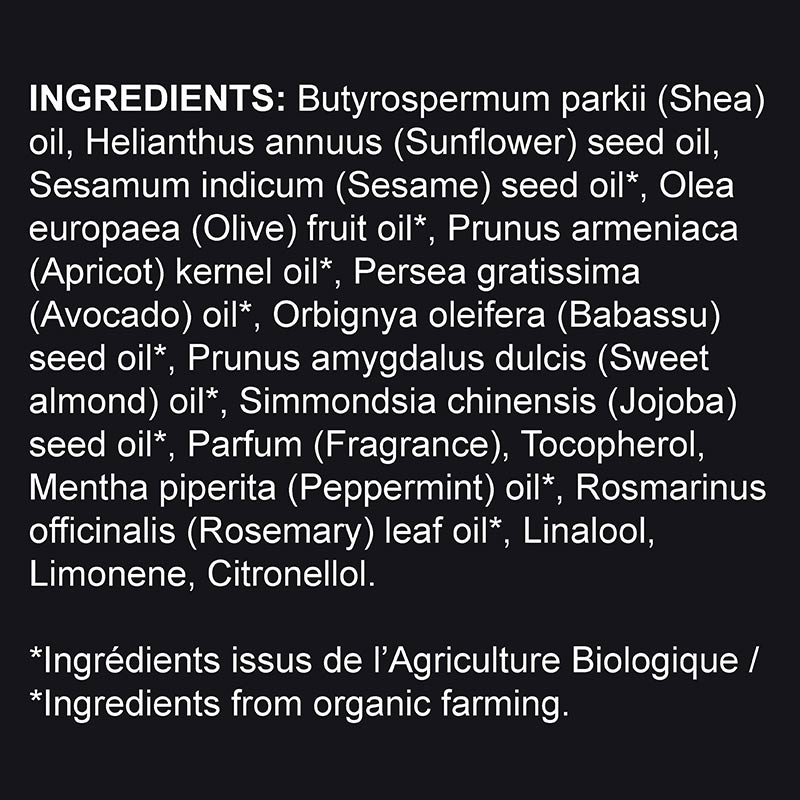 • Organic Sesame Oil: Known for its regenerative properties for skin. A natural ingredient full of antioxidants to keep skin healthy.