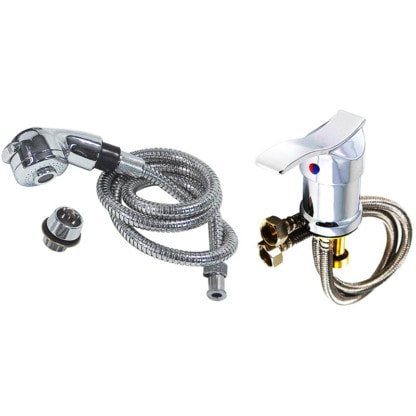 Basin Mixer Kit: Consists of: chrome tap mixer (2276), hand shower (2273) & flexi-pipe 1.2m. Pair with professional basin for efficient client hair rinsing and washing.