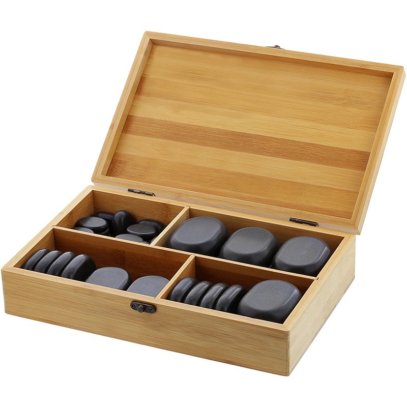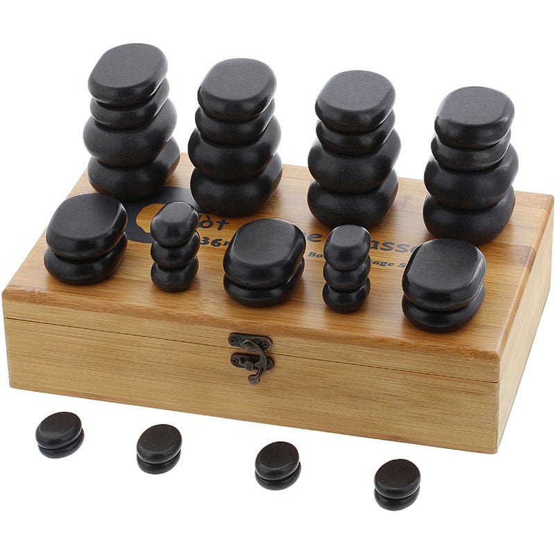Includes 8 x large, 14 x medium, 6 x small and 8 x toes. The ultimate collection with a variety of stone sizes for different massage needs. The comprehensive spa collection. High quality spa stones for spa treatments. Natural, volcanic rock. Naturally sourced, but polished to ensure that the stone is even, easy to hold and retains its heat sufficiently.