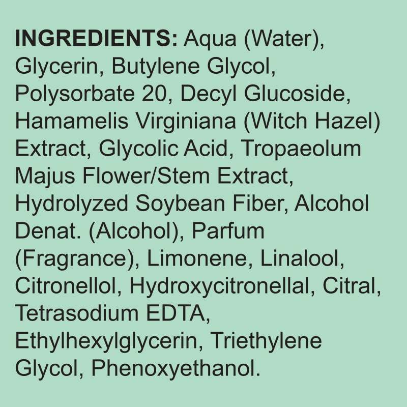 Contains glycolic acid which has effective exfoliating properties to remove dead skin cells. Since the skin is left hydrated with natural oils and sebum maintained, the skin is in a much better condition. The water helps to reduce facial lines, plumps up the skin and helps balance the skin’s natural hydration level so the skin is not left dry or excessively oily at the end of the day. The skin’s surface is improved in look and feeling with a renewed glow. Works as an anti ageing product as the skin is left elastic and hydrated.
