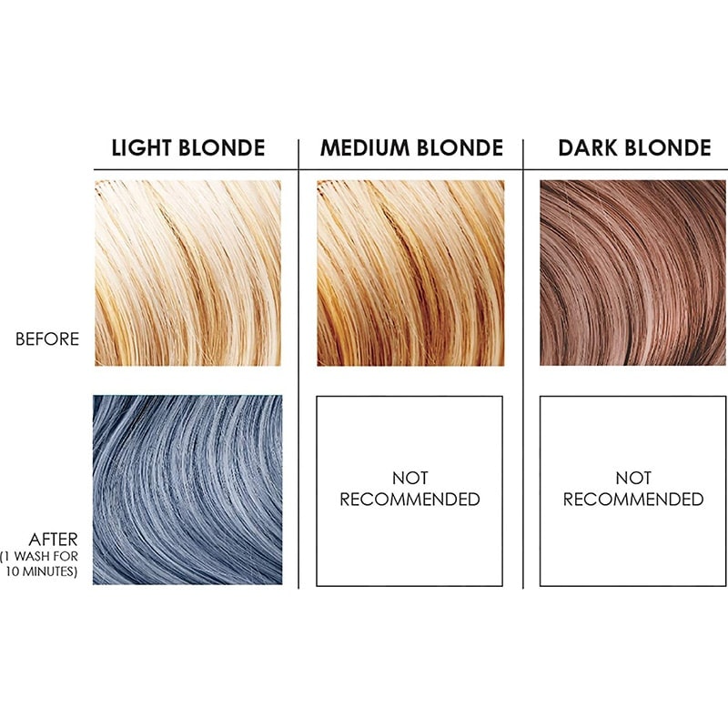Transform your hair with a single wash. Use only on pre-lightened hair to a level 7 or higher. Wash with chosen color and step out to stunning color. Color lasts approximately 10-15 shampoos depending on hair porosity and chosen color. Vivid colors like blue will last longer than subtle shades like light pink.