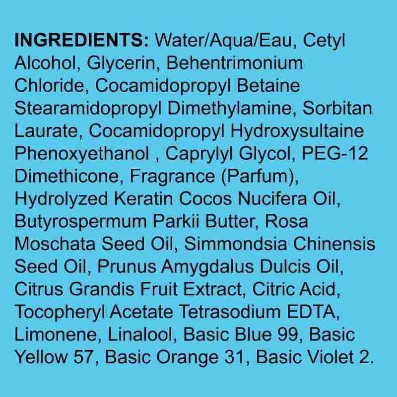 • Shea butter: Contains Vitamin E and intense moisturizing properties to leave hair incredibly soft.