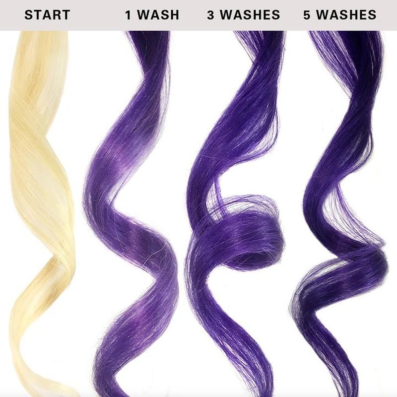 Transform your hair with a single wash. Use only on pre-lightened hair to a level 7 or higher. Wash with chosen color and step out to stunning color. Color lasts approximately 10-15 shampoos depending on hair porosity and chosen color. Vivid colors like blue will last longer than subtle shades like light pink.