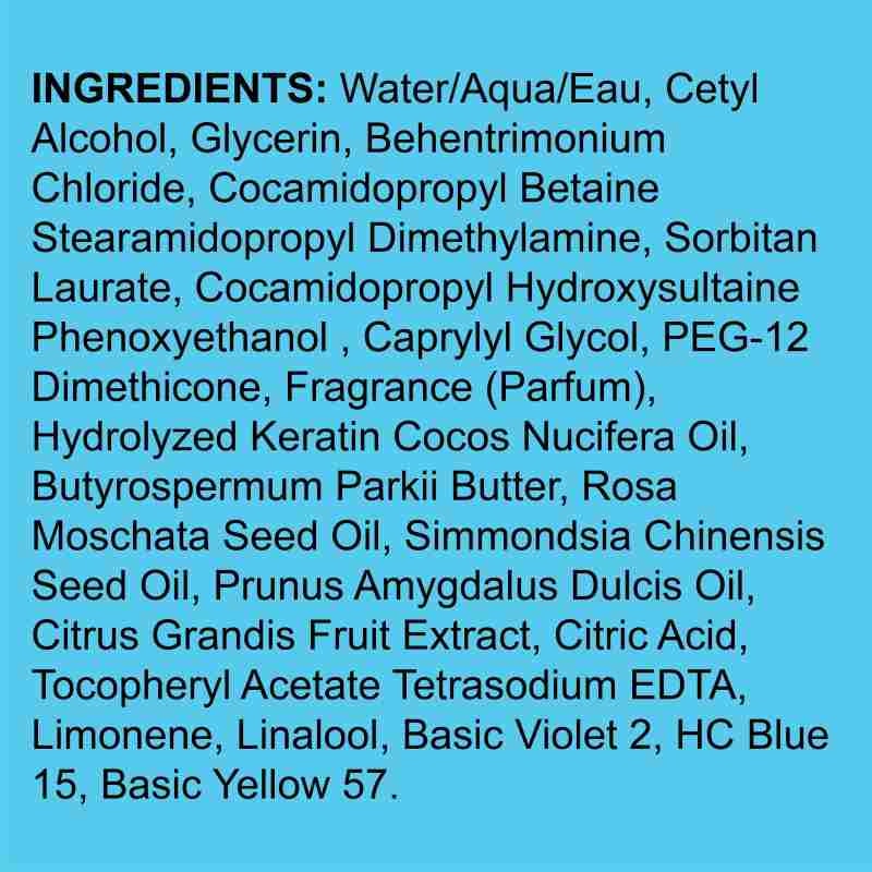 • Keratin: Smooths hair cuticles and fills in any gaps to make hair stronger. This signature keratin improves hair elasticity and strength, and leaves a smoother and straighter texture, making colour look more impressive. Also provides UV protection, and restores moisture and shine.