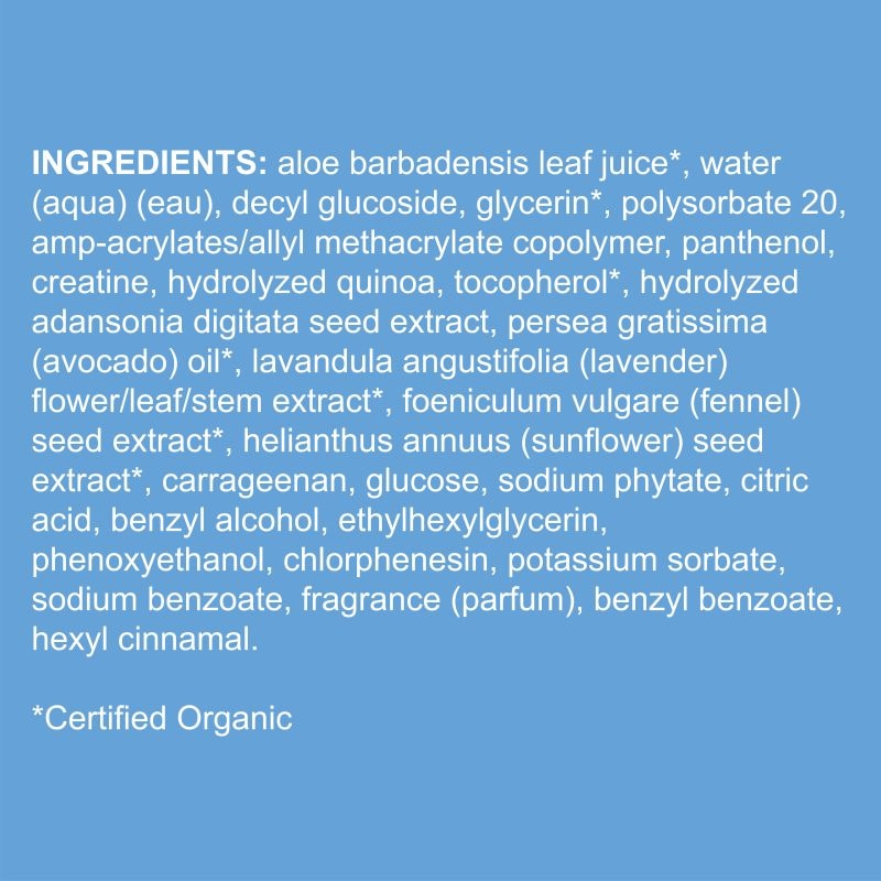 • Aloe Barbadensis Leaf Juice — combats excessive oil build-up and dandruff on the scalp and eliminates bacteria