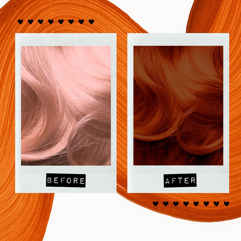 Copper Kitty is an amber-toned medium copper shade to refresh faded colour. Can give hints of copper to virgin, unbleached hair. If applying to already pre-lightened hair, use a second application to achieve more colour depth. Complements Manic Panic Tiger’s Eye and Psychedelic Sunset colours.