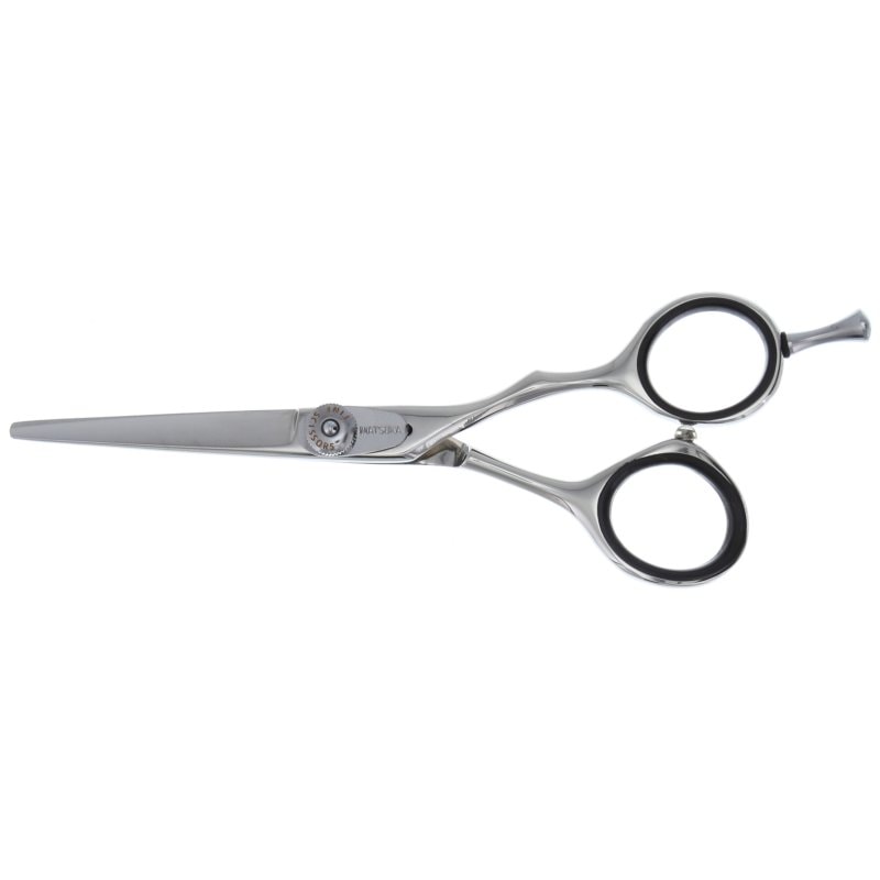 The offset position of the two scissor rings relieves tension in the muscles of the arm, neck and shoulders. Cutting becomes comfortable and effortless.