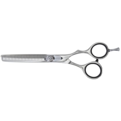 The offset position of the two scissor rings relieves tension in the muscles of the arm, neck and shoulders. Cutting becomes comfortable and effortless.