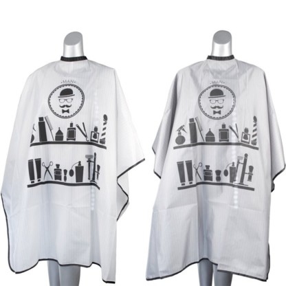 Sophisticated style and finish. Large coverage cape for maximum protection. Features sophisticated motif of barber tools.