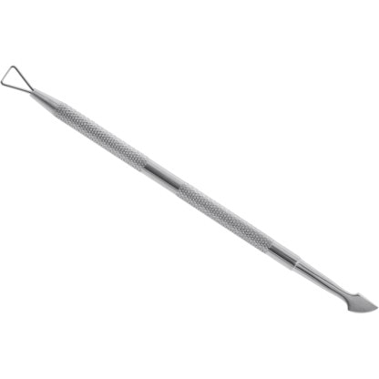 Pusher made of 100% stainless steel for painless and efficient cuticle maintenance. Use sharp end on one end to cut or scrape away and other end to shape cuticle by flawlessly pushing the skin back for a smooth surface. Flat wire end can also be used to easy off polish from the nail after soaking for more efficient removal.