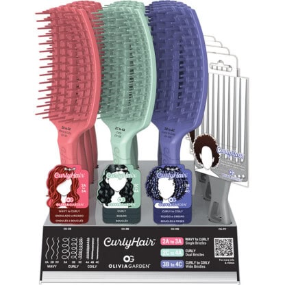 The three CurlyHair™ brushes and pick comb are crafted as one curved piece without any connection points to prevent snagging and massage the scalp.Identify your curl type