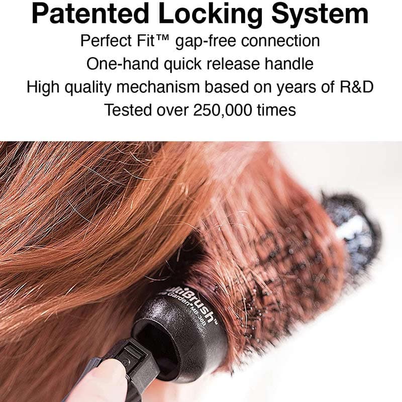 One handle and multiple brushes – styling made easier. MultiBrush features a unique and patented system that allows the dedicated brush barrels in this range to be seamlessly attached and detached whenever needed. This allows you to set multiple barrels in place in the hair without the need for brush barrels getting in the way. Choose your desired brush diameters and use dedicated handle.
