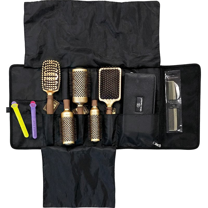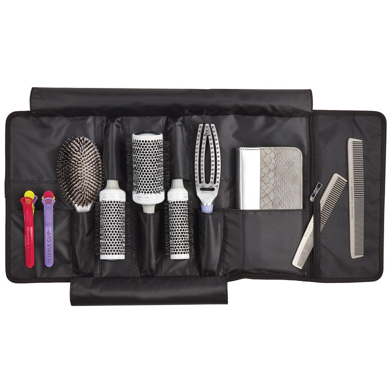 Roll-up bag Ideal for storing and transporting your favourite Olivia Garden styling tools. Designed to comfortably fit a variety of different tools including brushes, combs, pouches, clips and more. Simply place tools in specialized sleeves for safe storage and travel.