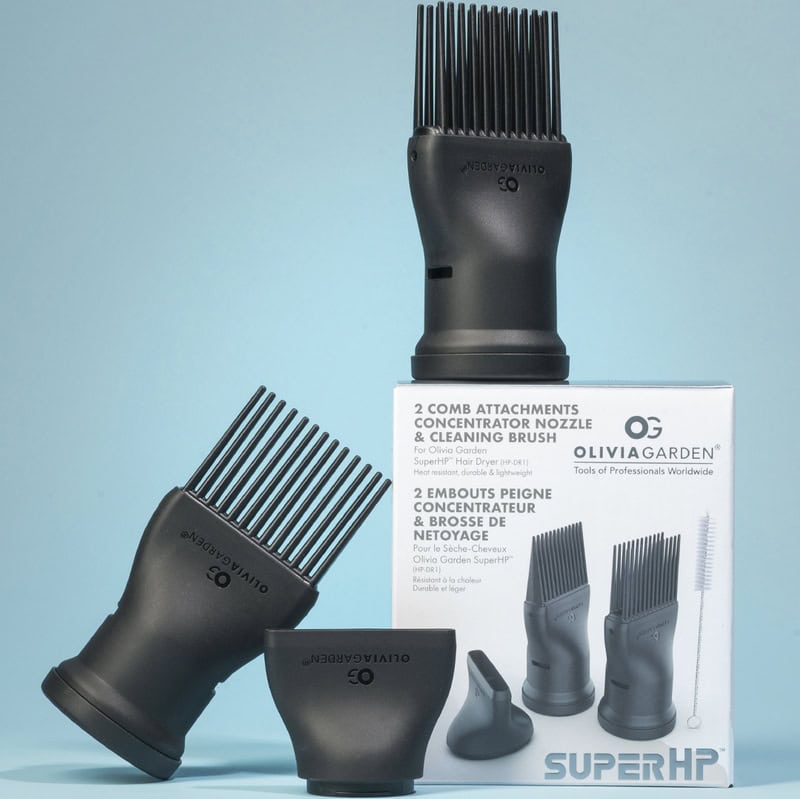 The SuperHP™ includes a concentrator nozzle for powerful, controlled & even airflow, diffuser with 13.3cm diameter to gently dry while creating shiny curls or beautiful waves without heat damage or frizz, and a cleaning brush to clean the internal filter.
